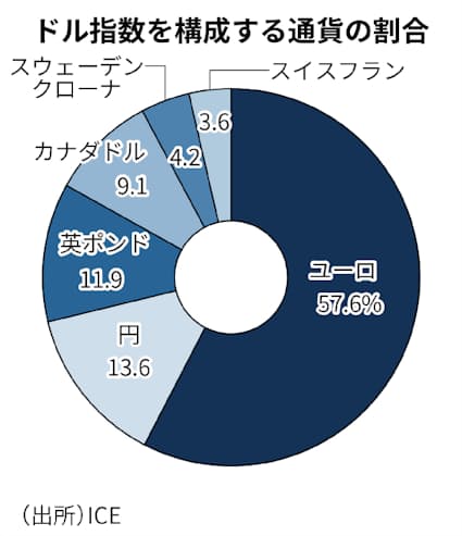 通貨の総合的な価値を示す実効為替レートにはドル指数のほか、様々な種類がある。国際決済銀行(BIS)が算出する名目実効為替レートや、日本経済新聞社が算出する主要25通貨を対象とした「日経通貨インデックス」などだ。ICEのドル指数は米先物市場で売買できるため、市場では代表的な指標として特に注視されている。
