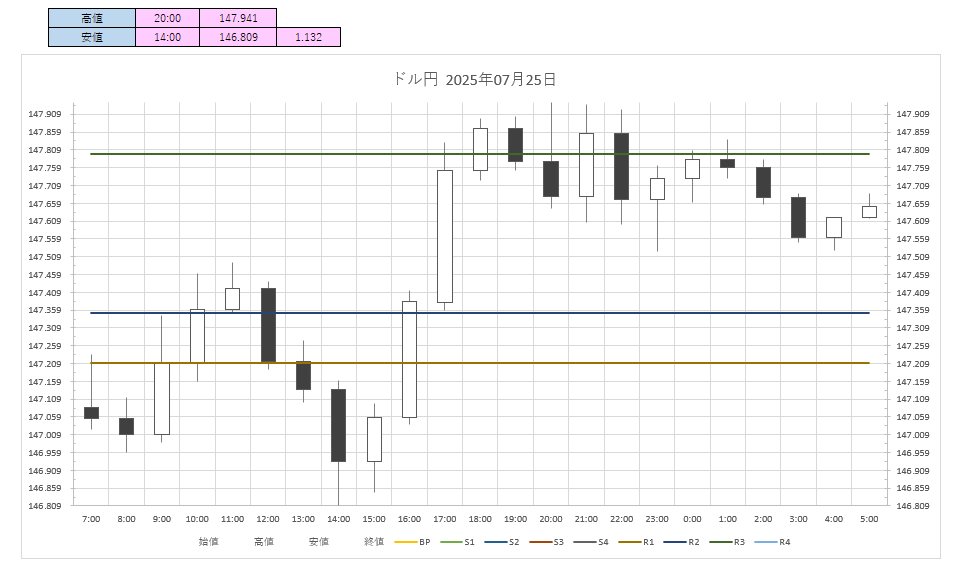 【ドル円】【フィボナッチゾーン】 2025年07月25日