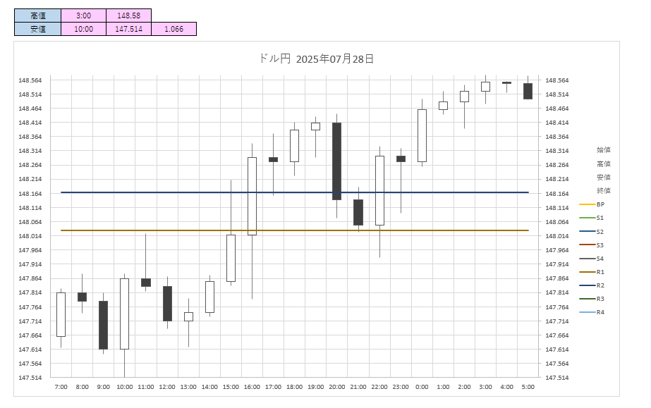 【ドル円】【フィボナッチゾーン】 2025年07月28日