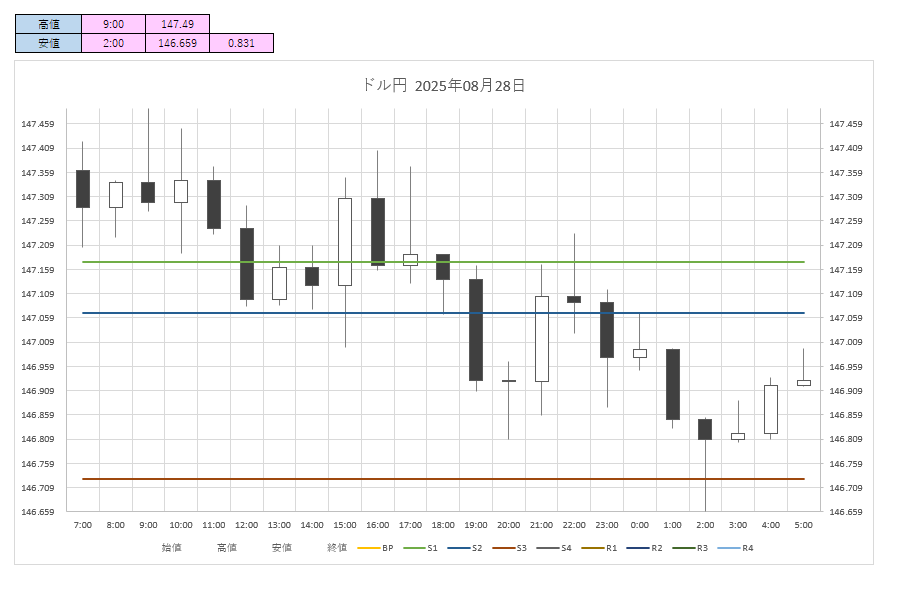 【ドル円】【フィボナッチゾーン】 2025年08月28日