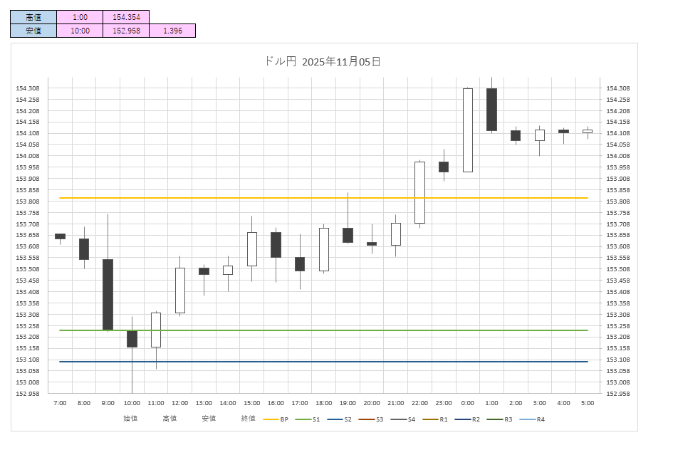 【ドル円】【フィボナッチゾーン】 2025年11月05日