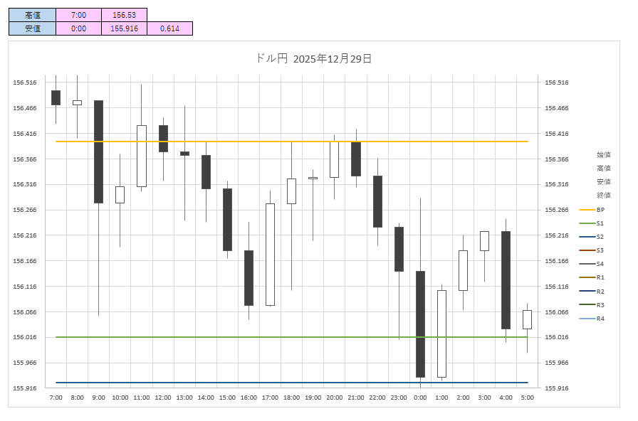 ドル・円相場:1ドル=156.18円(29日15時時点比▲0.13円)