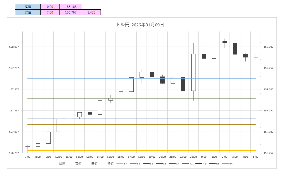 ドル円:156.78円 - 158.18円