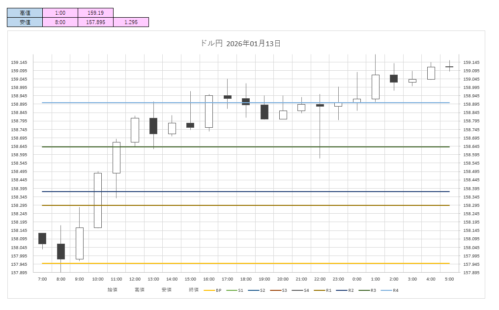 ドル円:157.90円 - 158.69円