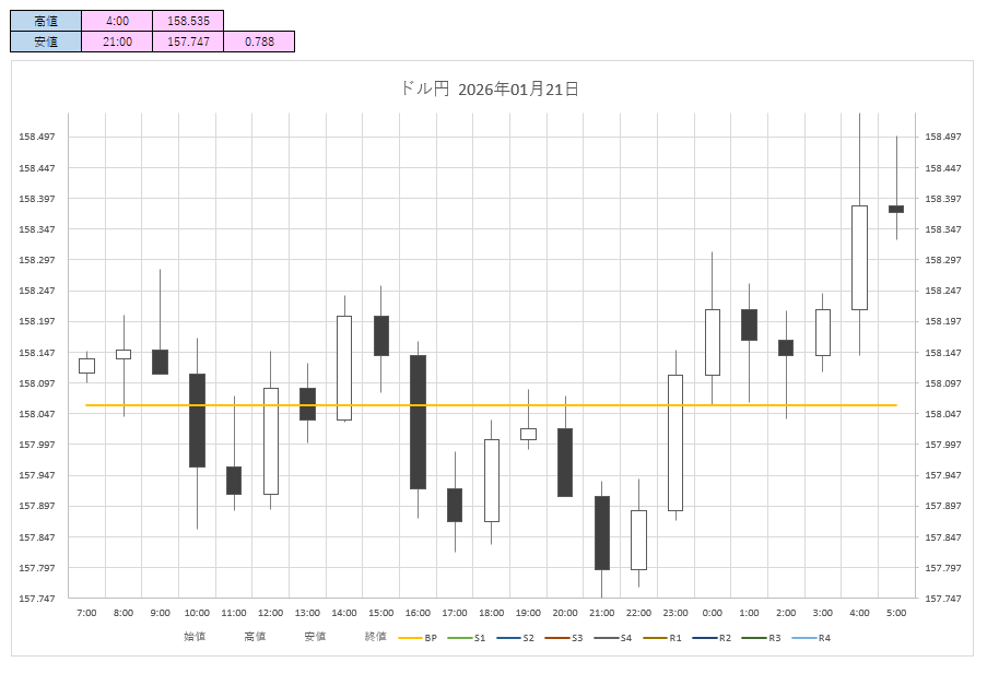 【ドル円】【フィボナッチゾーン】 2026年01月21日