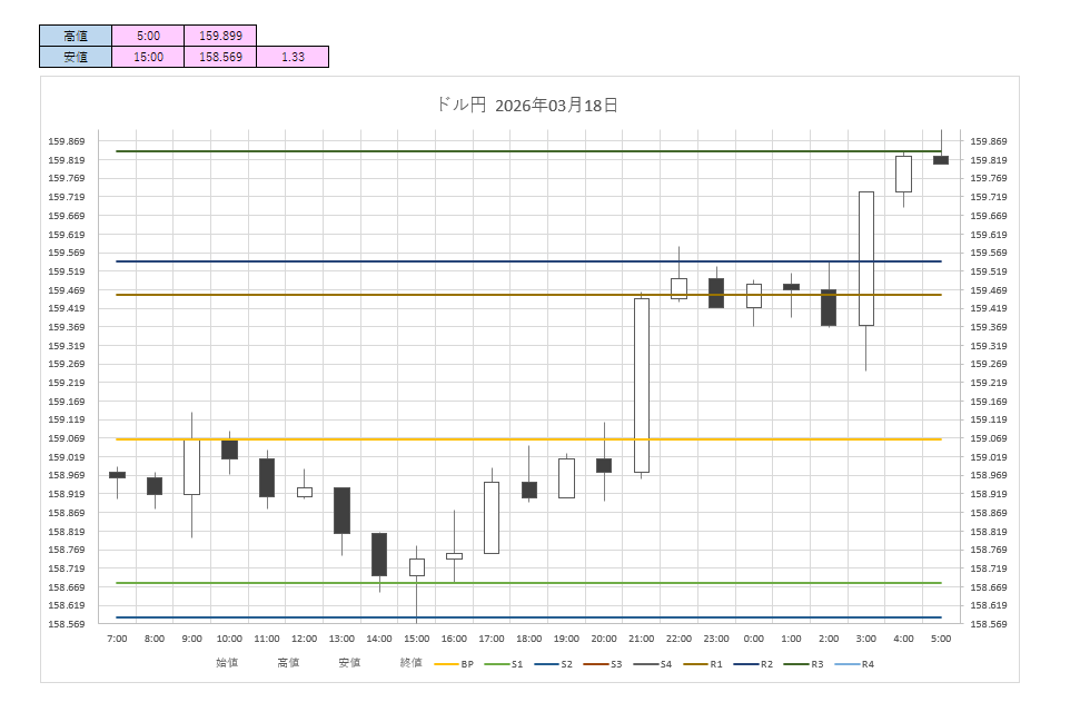 ドル円:158.57円 - 159.76円