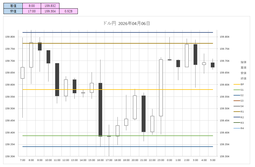 先週末の海外市場では、米雇用統計発表後に一時159.81円と日通し高値を付けたものの、すぐに失速した。ただ、下押しも限られた。ユーロドルは1.1514ドルまで弱含んだが、聖金曜日の祝日(グッドフライデー)で欧州やカナダが休場、米国も株式・商品市場が休場だったことで値動きは限られた。