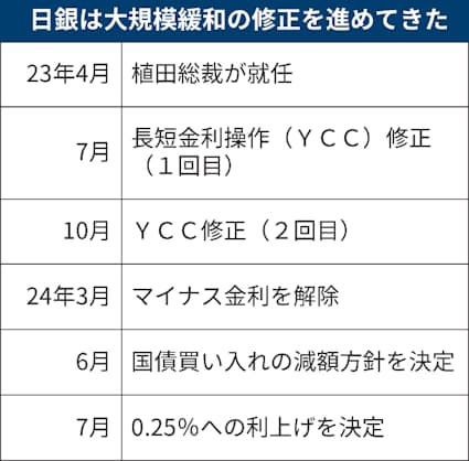 日銀は2024年7月末の決定会合で政策金利である無担保コール翌日物金利の誘導目標を0.25%へと引き上げると決めた。利上げすれば半年ぶりで、24年3月のマイナス金利解除以降で3回目となる。0.5%への利上げは07年2月以来。0.5%の水準は08年10月まで続いたため、17年ぶりの金利水準となる。