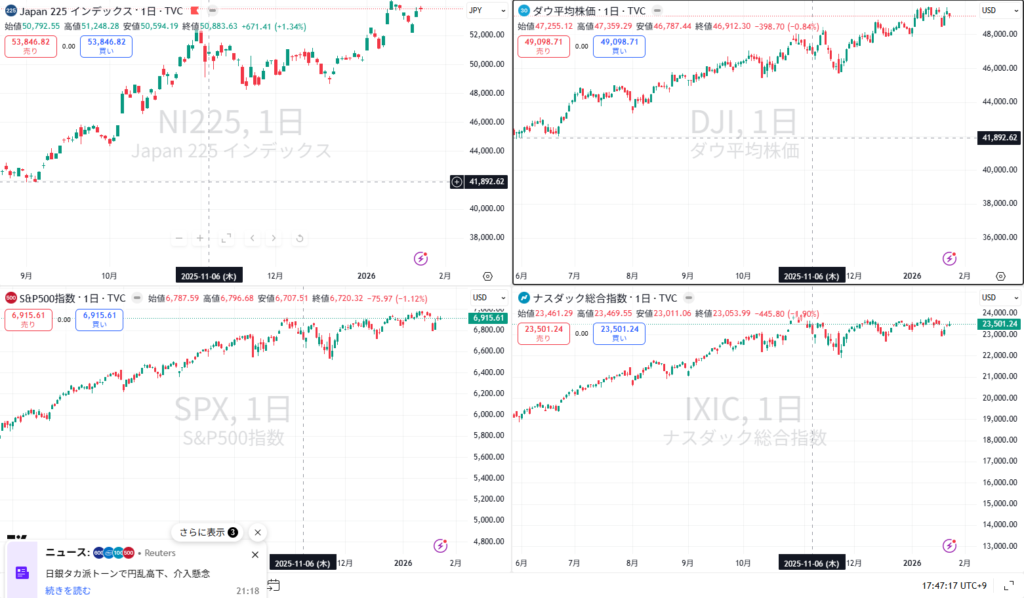 HOME > 記録 > 株価指数記録 > 株価指数記録 株価指数記録 2026年01月25日 2026年1月25日 「会社四季報」業界地図 2026年版 ・株式投資 →銘柄発掘、銘柄分析に ・就活・転職 →業界研究、志望企業探しに ・ビジネス →雑談ネタ探し、客先の動向把握に アニメ、マンガで大注目の「IP(キャラクタービジネス)」から、AIを支える「 ... www.amazon.co.jp 為替・FXランキング 短期トレード向きの「DMM FX」 Twitter Share Pocket Hatena Pinterest LINE コメント URLコピー -株価指数記録