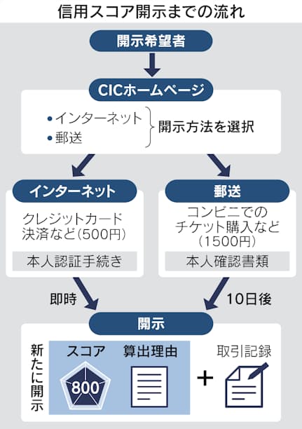 郵送の場合、本人確認書類とコンビニで購入したチケットなど手数料1500円分を同封して送る。送付から10日ほどで信用スコアなどが記載された書類が届く。