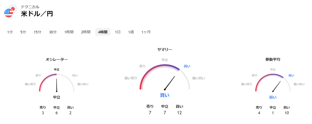 • MA100(4時間足):現在価格はMA100(青線)付近に位置しており、方向感は横ばい〜やや上向き。