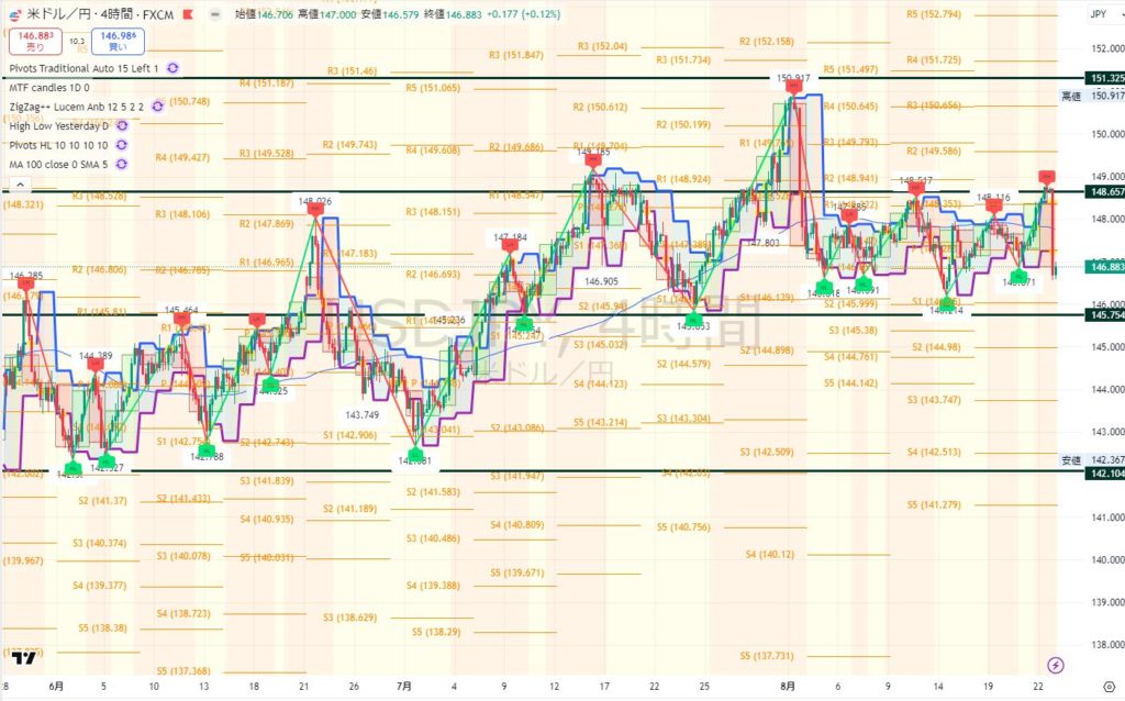 - 米PCE(8/30発表)に要警戒:結果次第で149円方向か145円方向か大きく動く可能性。