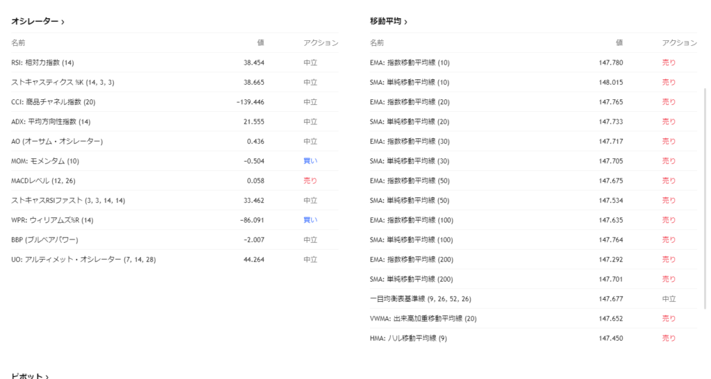 - チャート形状は「148円台での戻り売り圧力」と「146円台での押し目買い」が拮抗するレンジ。