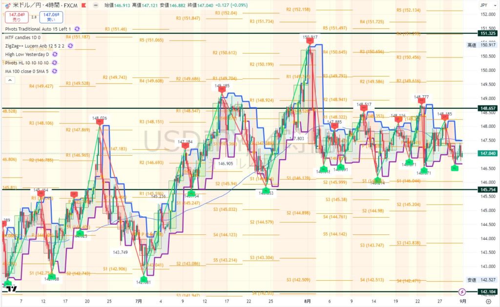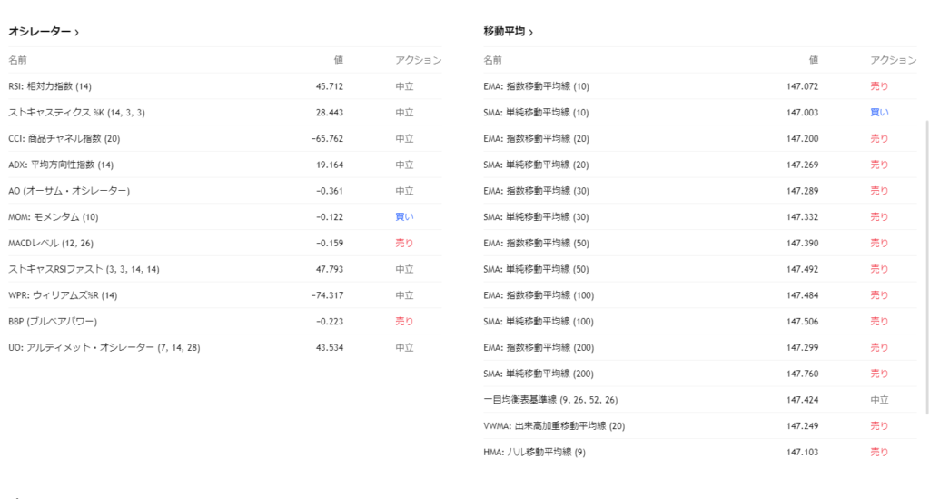 | 中立ゾーン | 146.2 ~ 148.76円(ActionForexのレンジ) |