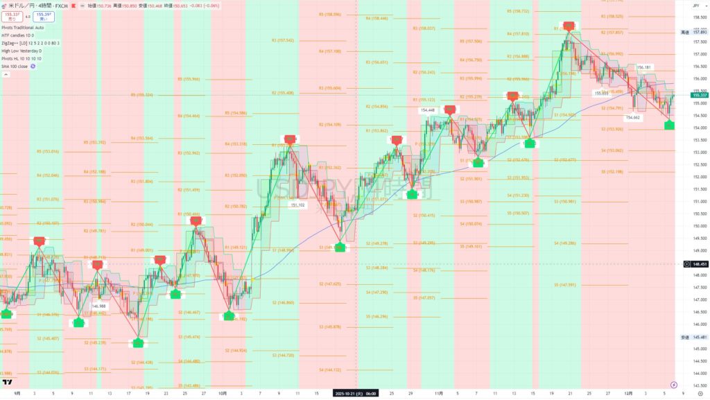 ※「円安寄り」の場合、チャート上の過去高値近辺(約157.5–158円)を強く試すにはやや材料が足りない印象ですが、短期の「戻し」は見込める可能性あり。