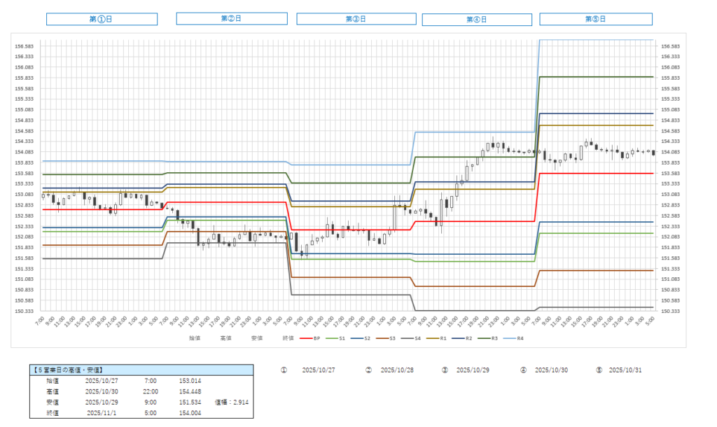 USDJPY フィボナッチ・ゾーン振り返り(2025/10/27〜10/31)